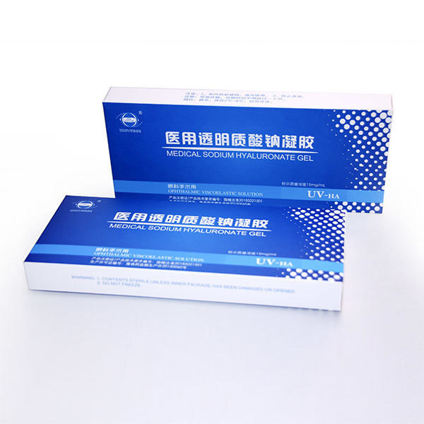 1,5% geles oftálmicos 1.5ml de Hyaluronate do sódio são uma preparação estéril, nonpyrogenic, viscoelastic de um refinado altamente, noninflammatory, alto - fração do peso molecular do hyaluronate do sódio. Poderia atuar como o enchimento para manter a profundidade da câmara anterior. Igualmente pode proteger tecidos da ocular, lubrifica dispositivos da cirurgia e reduz complicações após a operação.